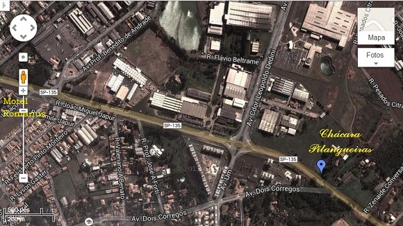 Com localização privilegiada, a Chácara Pitangueiras situa-se no perímetro urbano de Piracicaba SP, no Bairro Dois Córregos, às margens da Rodovia SP 135 no km 18,5. - Antiga rodovia que liga a cidade ao bairro Tupi, prolongamento da Av. Cássio Paschoal Padovani, aproximadamente 100 metros após a rotatória da Av. Comendador Leopoldo Dedini, no sentido Piracicaba-Tupi.